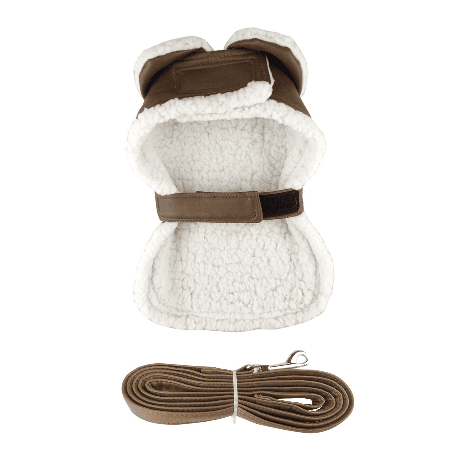 Home > Brown and Black Faux Leather Bomber Dog Coat Harness and Leash